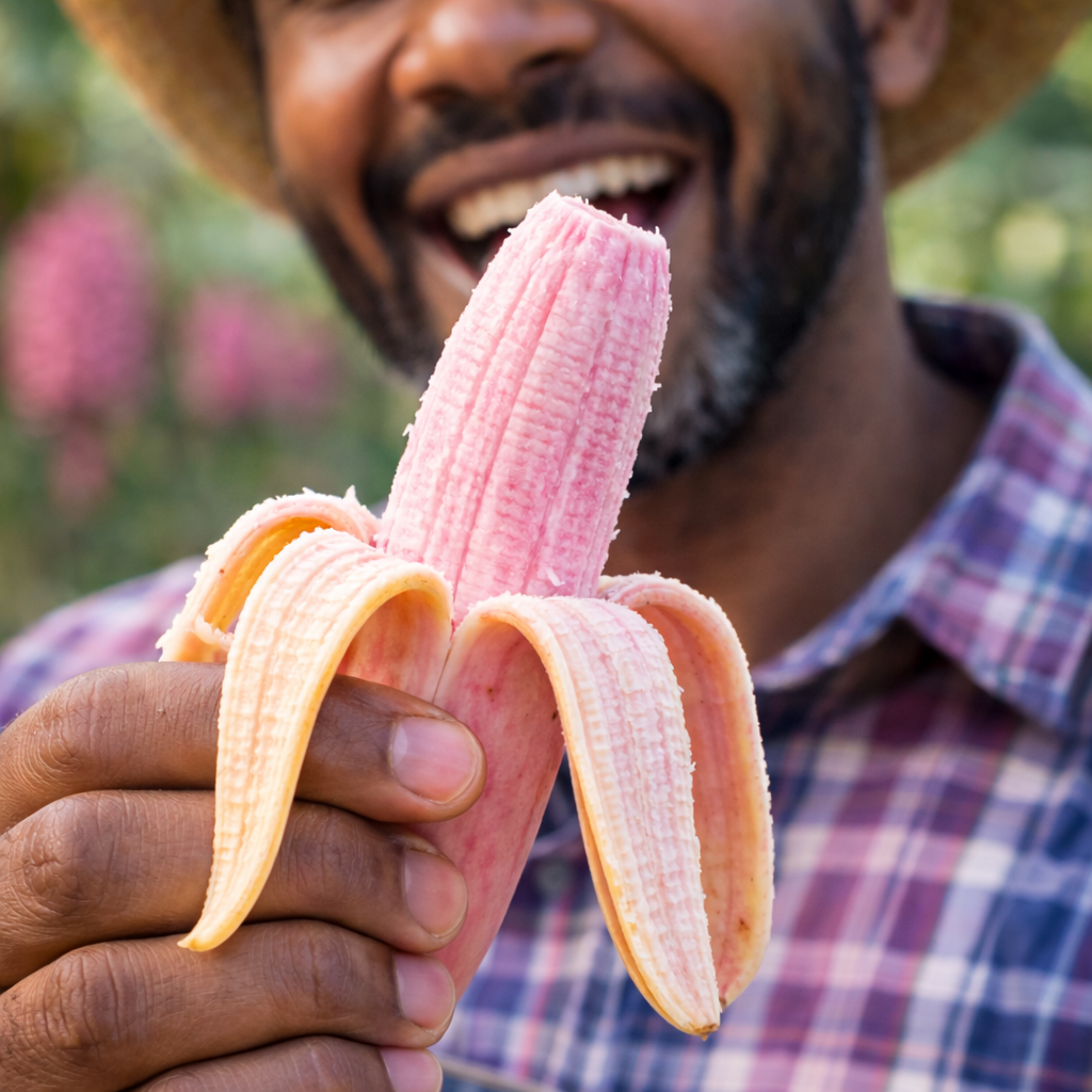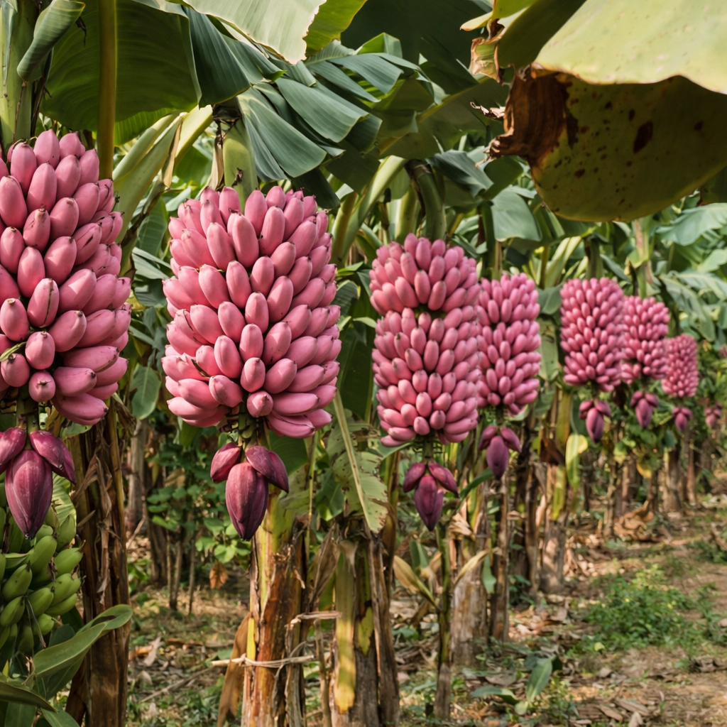 Packed with natural vitamins, potassium, and beneficial antioxidants, Pink Bananas offer more than just their stunning tropical color. Their soft blush skin and pale pink flesh signal a rich, creamy sweetness with a smoother, less acidic flavor than traditional yellow varieties.Each harvest delivers large, tender fruit with a velvety texture and naturally sweet aroma �� indulgent yet wholesome, making it a delightful and nutritious treat for the whole family.