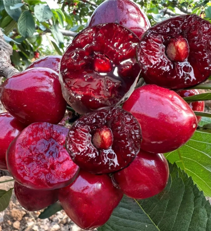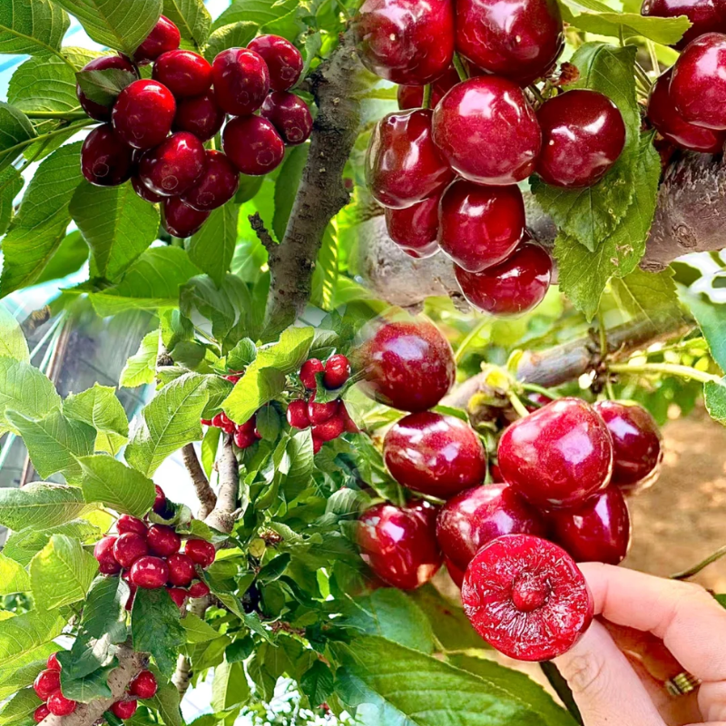 ���Take a light bite, and the thin peel will split immediately, revealing the bright red and plump flesh. The flesh is firm, thick and small in core, and the entrance is crisp, tender and delicate. When you take a bite, you will be filled with bright red juice and a hint of The rich cherry fruity aroma is so sweet that you can��t stop eating it�グ
