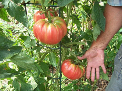 This variety is perfect for direct consumption and preserves. It forms very largely ( 20 cm in diameter ), strongly ribbed fruits that reach a weight of approx. 500 g, up to 2 kg in very good conditions. The fruits are very fleshy, red in the ripeness phase with a high dry matter content.