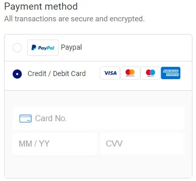 If you want to checkout with a  Credit and  Debit  Card, just enter your  *  Card No* Expiration Date, and  * CVV.